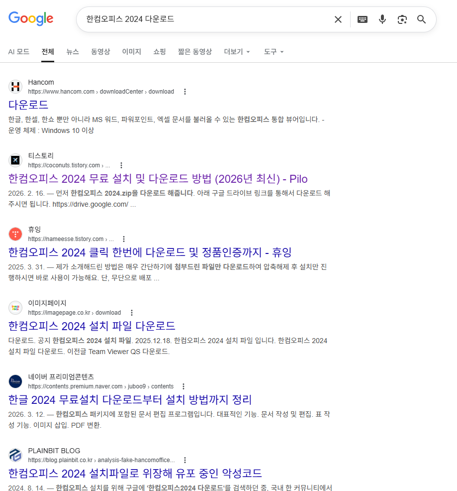 - 구글 검색창에 한컴오피스 2024 다운로드