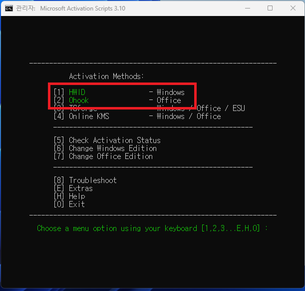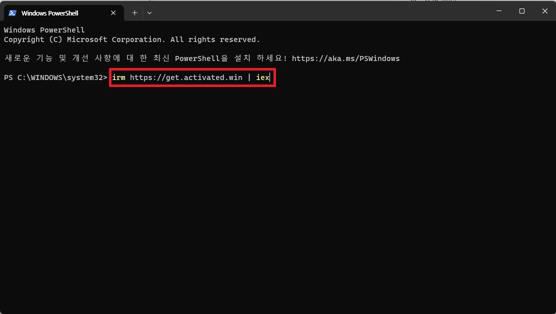 - PowerShell 창에서 -> irm https://get.activated.win | iex 엔터