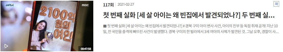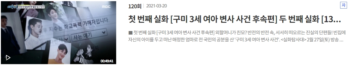 실화탐사대 117회 120회 122회