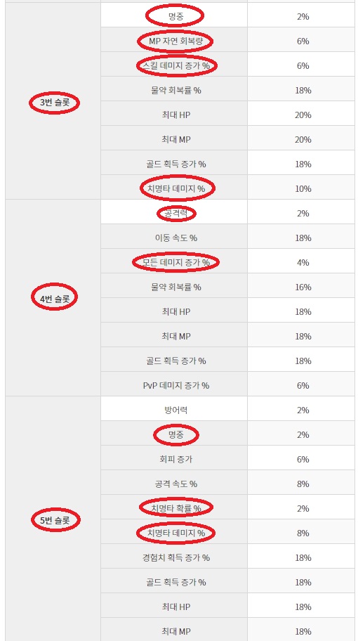 3번 명중 , MP 자연 회복량 , 스킬데미지증가