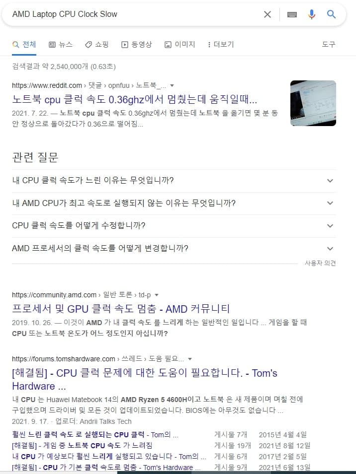 노트북 CPU 클럭 0.5G 0.4G 저하 고정 소음 해결