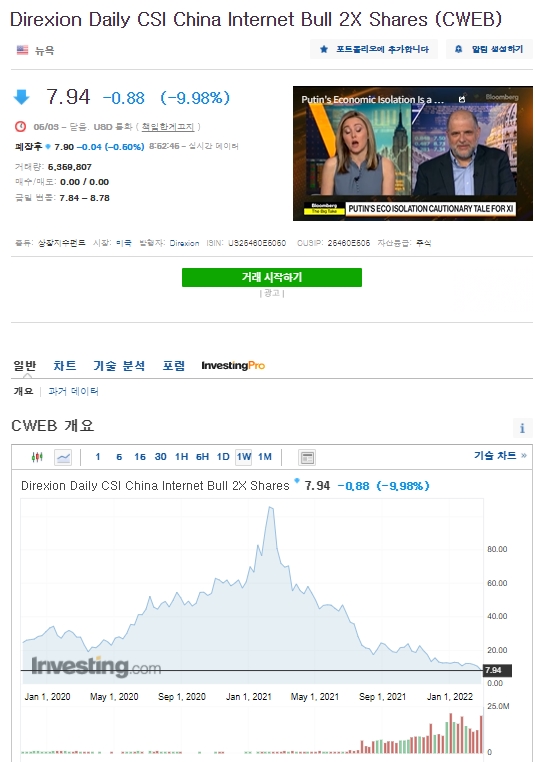 - 중국 빅테크 2배 2X 레버리지 (CWEB) 2022.03.06