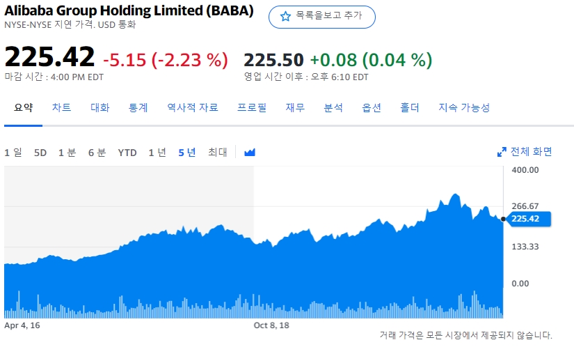 - 알리바바 (인터넷 쇼핑물 세계 3위) , 1년사이 -70% 폭락