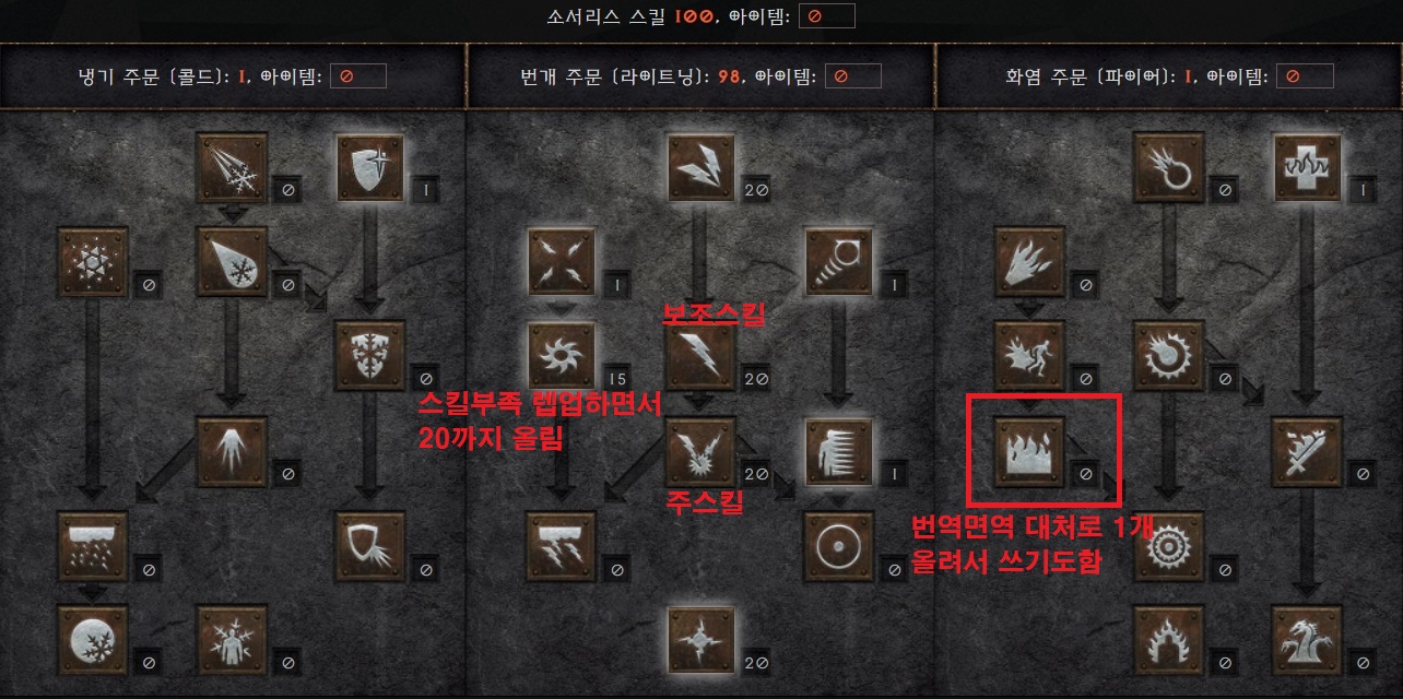 디아블로2 디아2 레저렉션 소서리스 소서 스킬트리